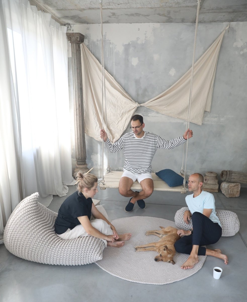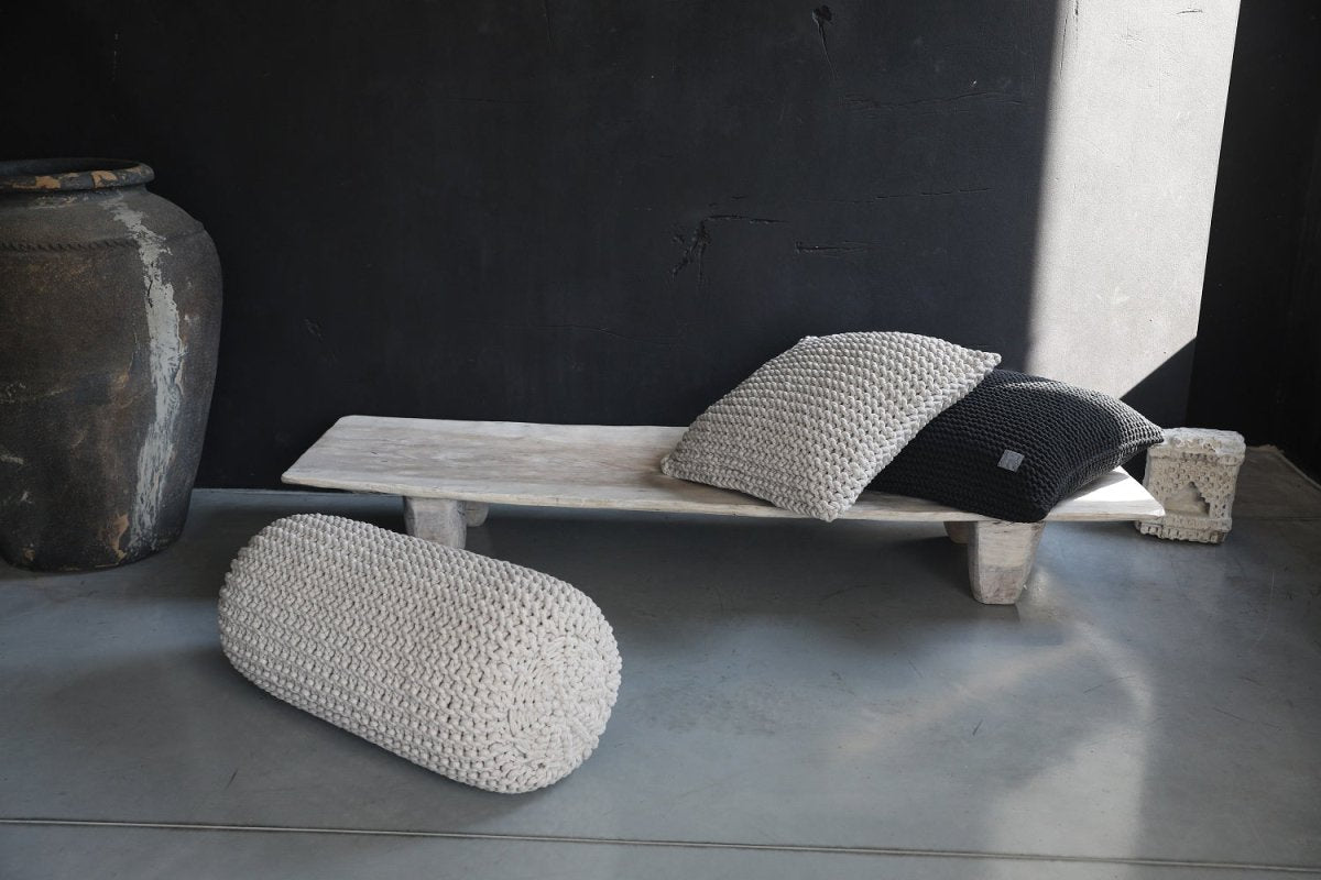 To enhance your relaxation space, we offer the Chunky Knitted Bolster Footrest as part of a SET with our Chunky Knitted Bean Bag.